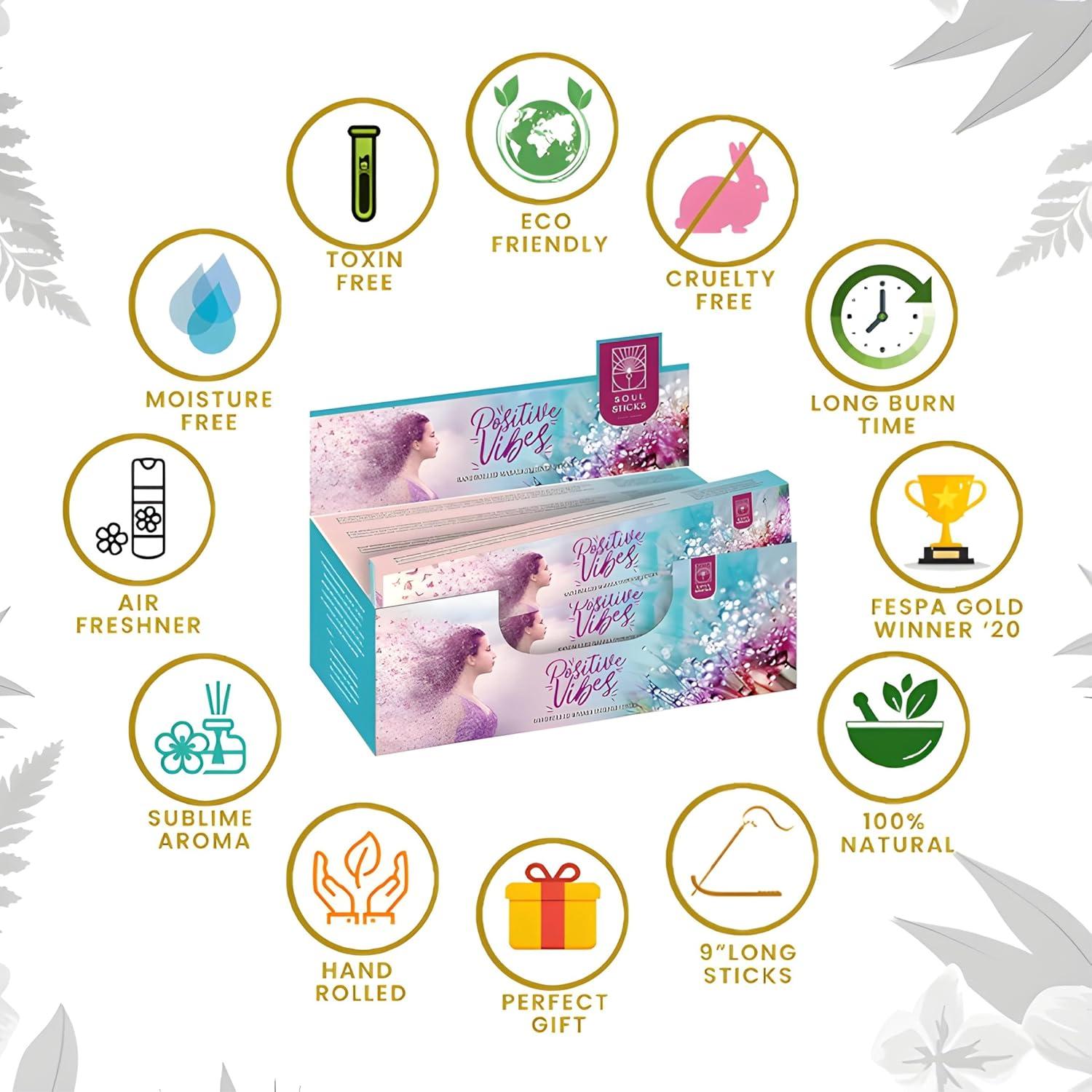 SOUL STICKS Hand-Rolled Incense Sticks Mystic Spirit Blends 180 Gram 12 Pack Box | 100% Natural Masala Incense Organic Home Fragrance Agarbatti (Twilight in The Woods)(Positive Vibes Incense)