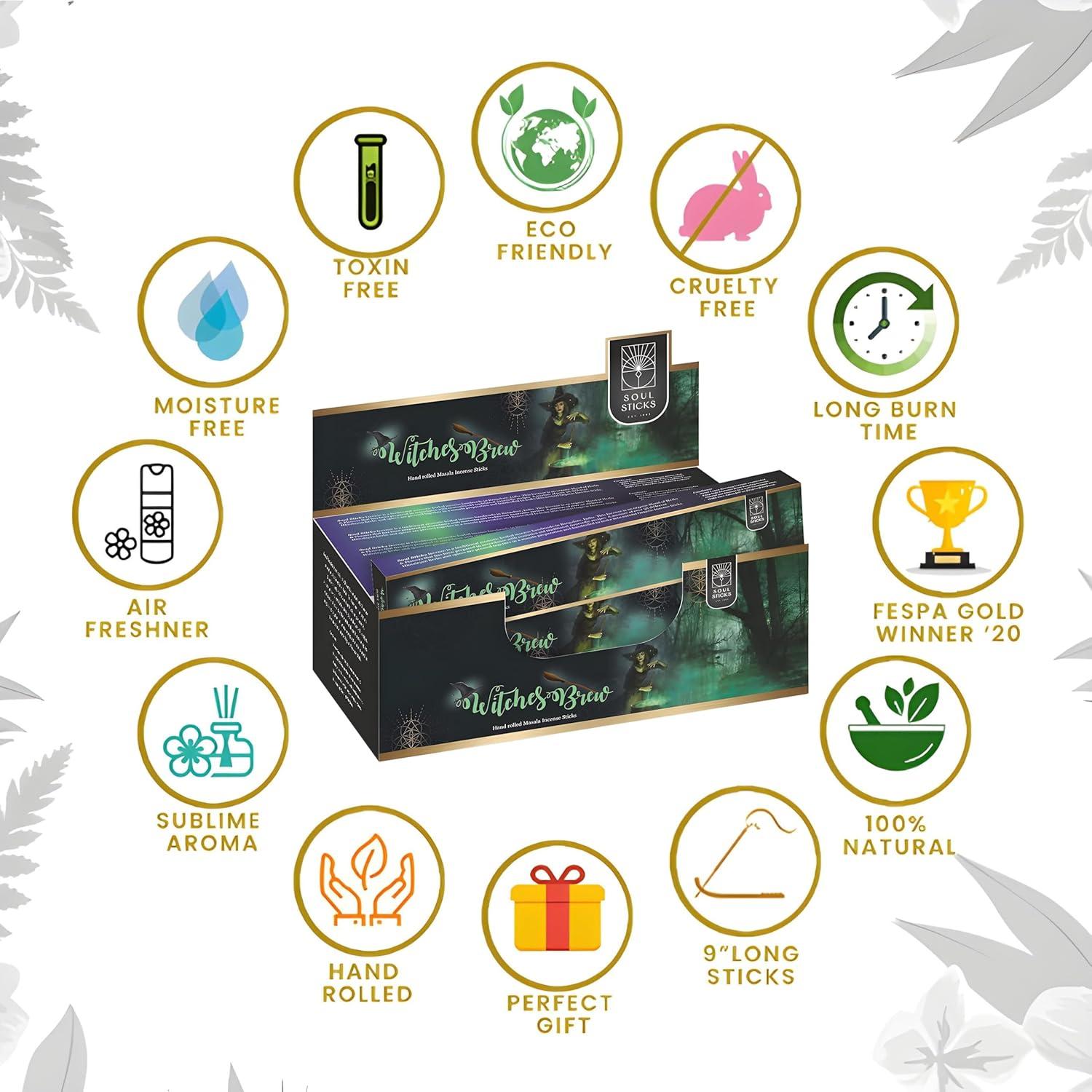 SOUL STICKS Hand-Rolled Incense Sticks Mystic Spirit Blends 180 Gram 12 Pack Box | 100% Natural Masala Incense Organic Home Fragrance Agarbatti (Twilight in The Woods)(Witches Brew Incense)