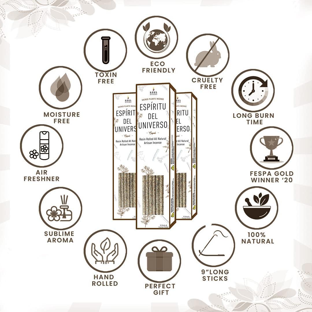 SOUL STICKS Handcrafted 10pcs Resin Artisan Incense Sticks Non-Toxic & Long Lasting Aromatic Sticks for Yoga Meditation Relaxation Aromatherapy Cleansing & Purification (7 Chakra Blend)(Copal)
