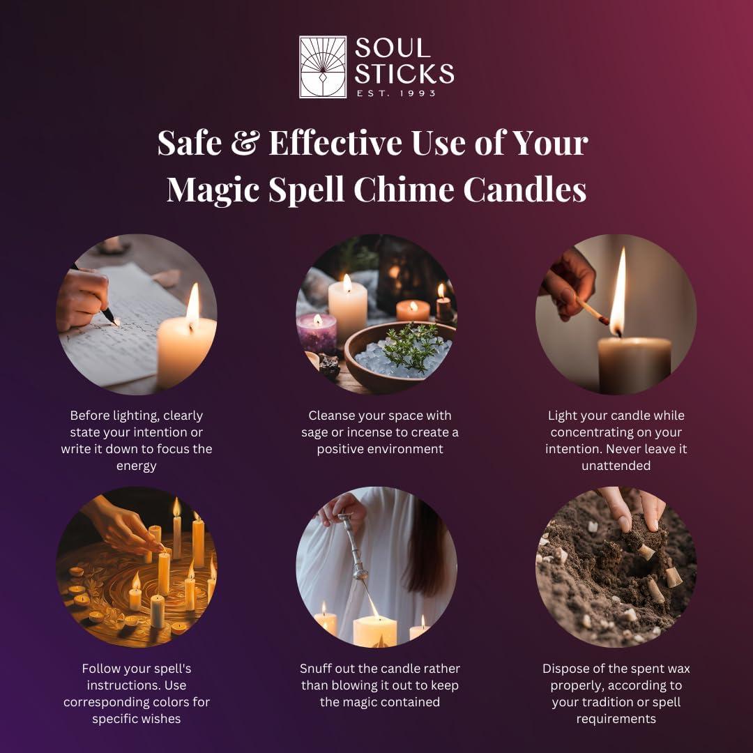 VARIETY OF COLORS: Our chime candles are available in a range of colors including blue candles, pink candles, and black candles, black candle, money candle. Whether you need a pink candle for love spells or blue candles for tranquility, our candle set caters to all your needs.