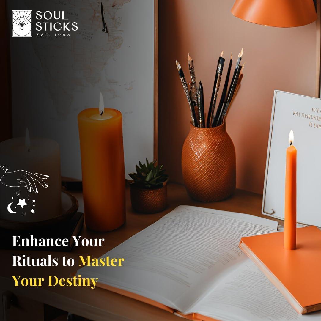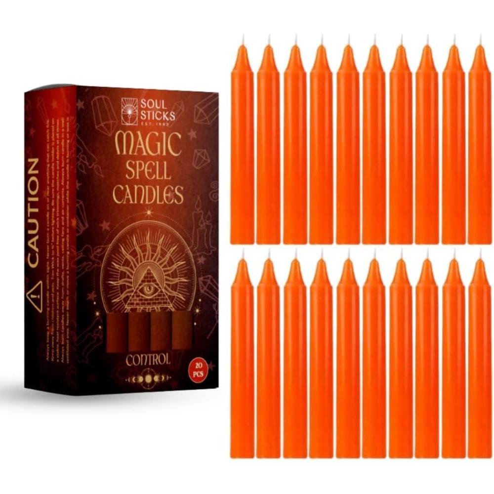 SOUL STICKS Protection Magic Spell Chime Taper Candles Black 20 Pack - Colored Unscented Chime Candles for Altar, Rituals, Ceremonies, Meditation Witchcraft Supplies, Wiccan, Candles Clearance(Control Orange Chime Candles)