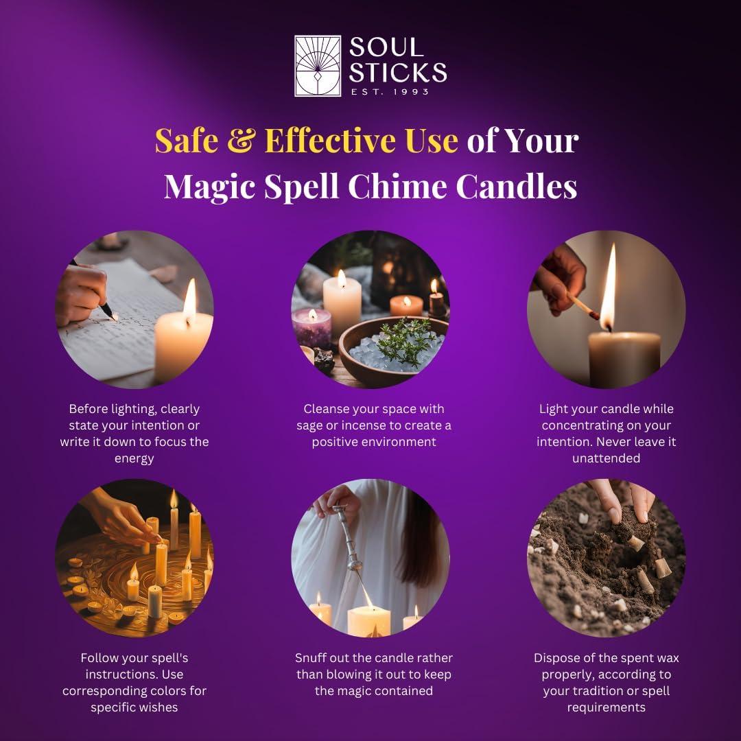 VARIETY OF COLORS: Our chime candles are available in a range of colors including blue candles, pink candles, and black candles, black candle, money candle. Whether you need a pink candle for love spells or blue candles for tranquility, our candle set caters to all your needs.