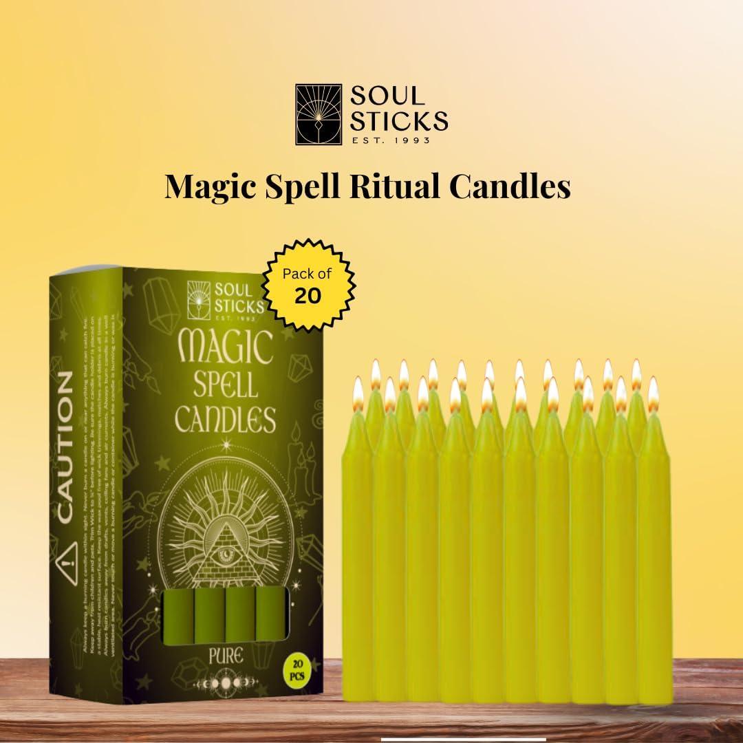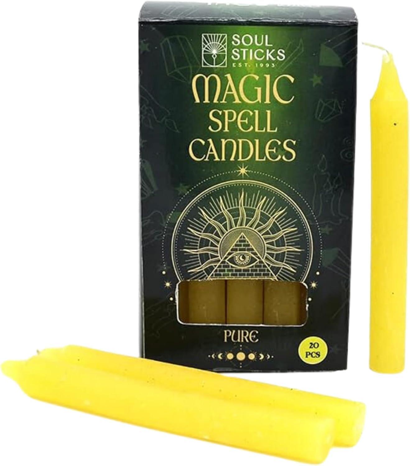 SOUL STICKS Protection Magic Spell Chime Taper Candles Black 20 Pack - Colored Unscented Chime Candles for Altar, Rituals, Ceremonies, Meditation Witchcraft Supplies, Wiccan, Candles Clearance(Pure Soul Yellow Chime Candles)