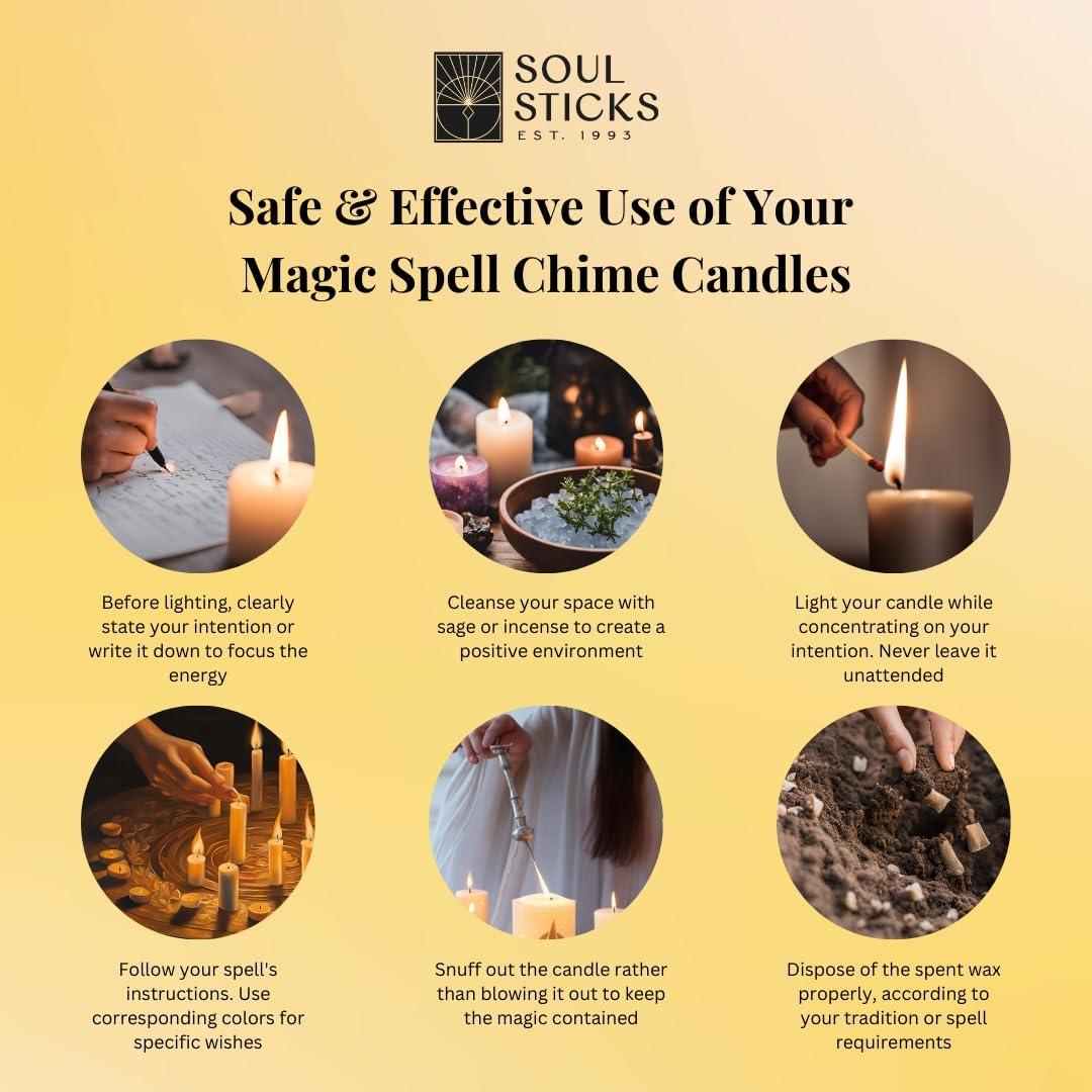 VARIETY OF COLORS: Our chime candles are available in a range of colors including blue candles, pink candles, and black candles, black candle, money candle. Whether you need a pink candle for love spells or blue candles for tranquility, our candle set caters to all your needs.
