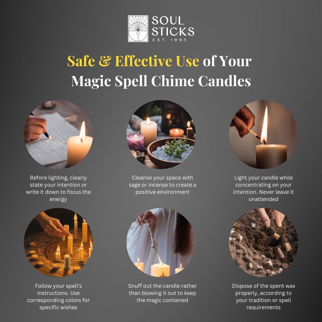 VARIETY OF COLORS: Our chime candles are available in a range of colors including blue candles, pink candles, and black candles, black candle, money candle. Whether you need a pink candle for love spells or blue candles for tranquility, our candle set caters to all your needs.