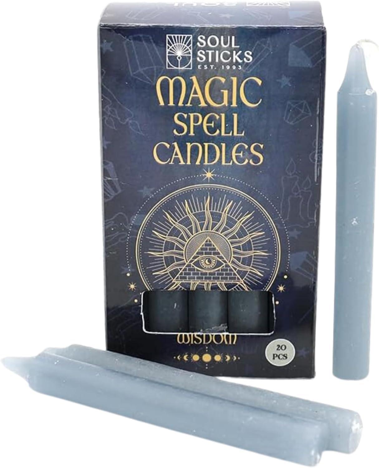 SOUL STICKS Protection Magic Spell Chime Taper Candles Black 20 Pack - Colored Unscented Chime Candles for Altar, Rituals, Ceremonies, Meditation Witchcraft Supplies, Wiccan, Candles Clearance(Wisdom Grey Chime Candles)